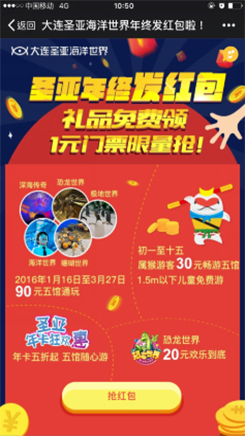 第二、海洋世界互动游戏 “年终发红包 1元门票限量抢”