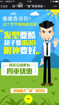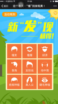 页面设计以清新活力为主要展示风格,给予用户春天气息的视觉冲击,从感官上吸引用户眼球。活动创意以选取植发项目进行答题闯关的形式进行,闯关成功则获相应优惠奖励。