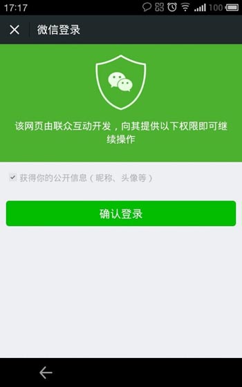 “签到”活动使用了微信平台最新开放的“微信登陆”功能,实现用户参与活动只需“一键”确认登陆即可以用户的微信账号实现在线登陆参与活动,整个活动环节借助技术功能极大的提升了活动中的用户体验,省却了需要用户注册登陆的繁琐方式来实现的步骤,同时让用户可以通过微信帐号来登录,也降低注册门槛和用户流失率。此外,还能在经过用户同意后,收集用户的基本信息(头像、昵称、性别、地区、语言)。