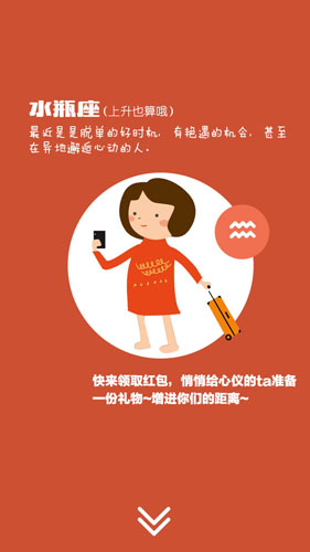以符合星座物语的动漫吸引少女和有着少女心的男孩,在特殊的节日给亲爱的ta送上礼物,设计用可爱的文字吸引看客,将软文小广告放在图片下达到软性宣传的效果。设计简洁而有细节,降低色彩饱和度,削弱色彩对人情绪的影响,从而提升画面质量,让人感官愉悦。