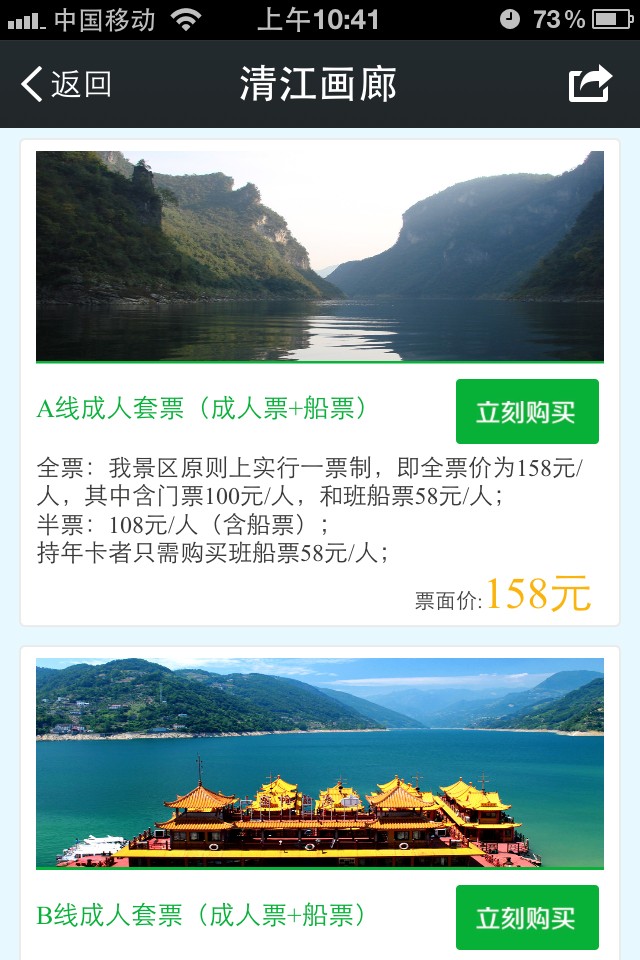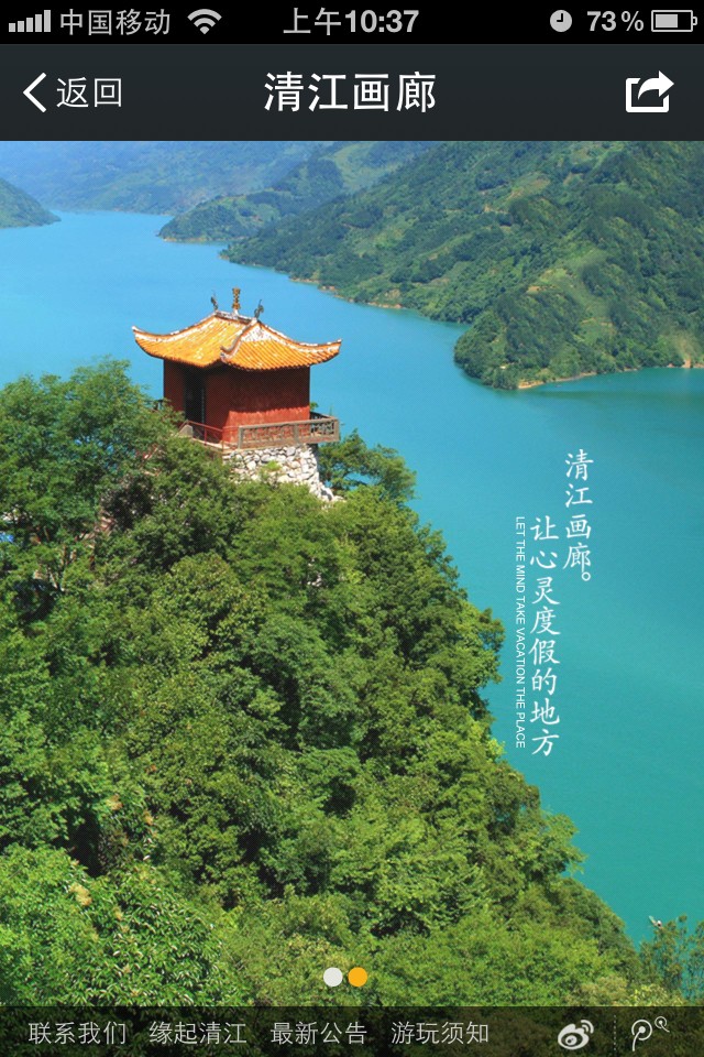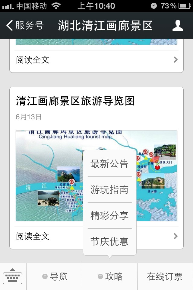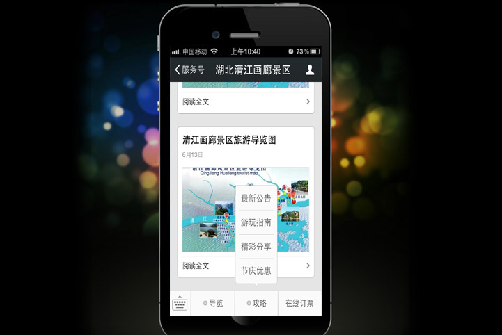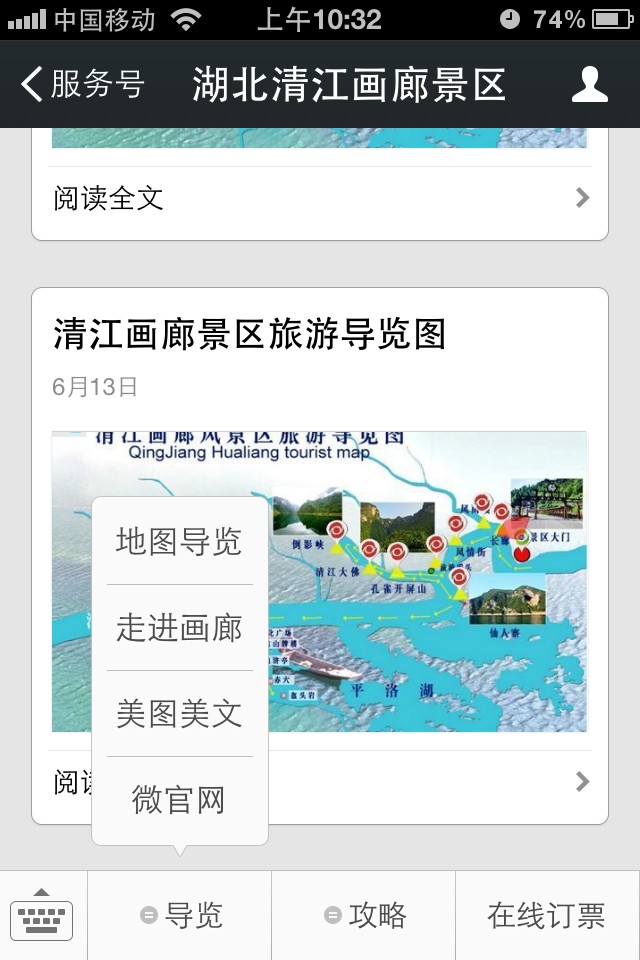 微景区微信自定义开发:湖北清江画廊景区服务号开发