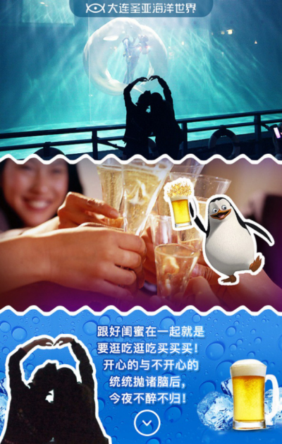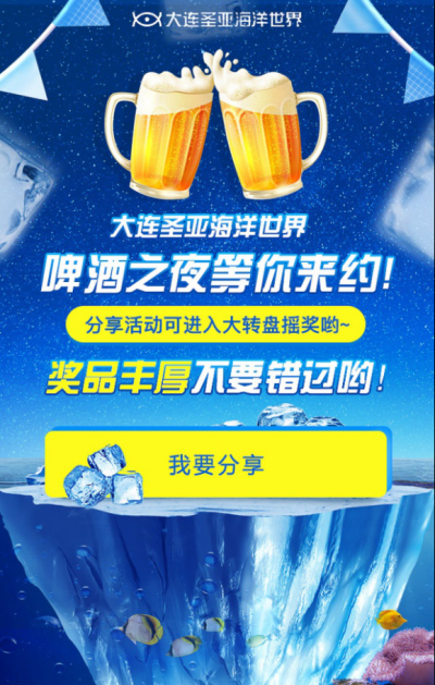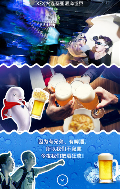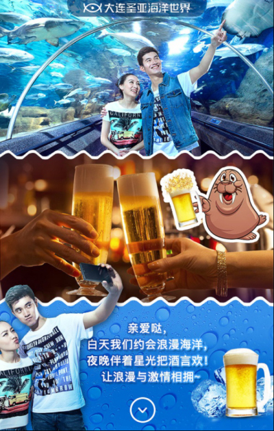唐宋中国为大连圣亚海洋世界设计的“浪漫圣亚VS激情啤酒节”微海报充分满足了客户需求,在设计中沿用了一贯的人性化设计,力求在视觉的冲击中提升用户的参与热情,从客户体验的角度结合新的站点功能进行程序开发,为活动的吸引性增加筹码,为用户的参与提供便捷,为客户的推广营造好的推广平台。本次微海报为品牌的宣传奠定了一定的基础,有效吸引带动用户参与,为品牌景区的知名度和销售额带来了一定的提升。