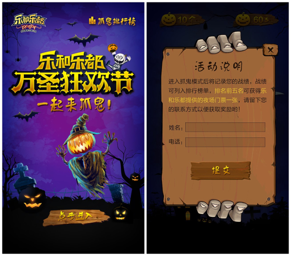 2、“2016乐和乐都 第四届万圣狂欢节来袭!”的微信互动游戏界面