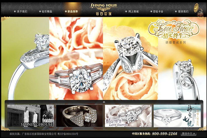 shininghouse钻石世家互动营销网站设计,此案例为钻石世家设计制作的互动钻石网站,并且能够网上电子商务交易。