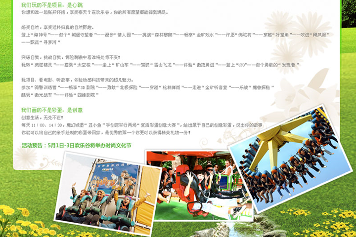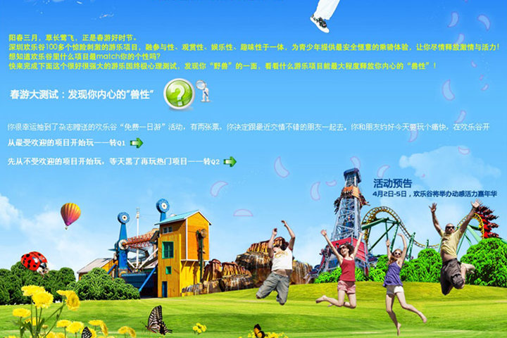 深圳欢乐谷是华侨城集团大型主题公园,每月都会有大型活动举行,要对每个主题活动做出专业,突出主题活动的网页页面设计。