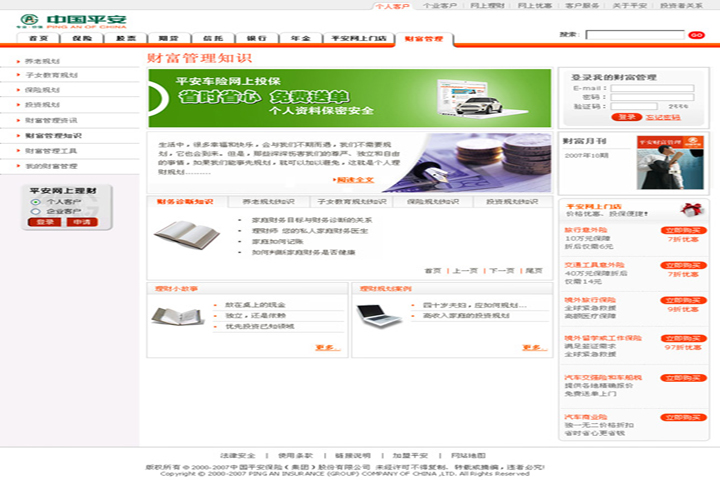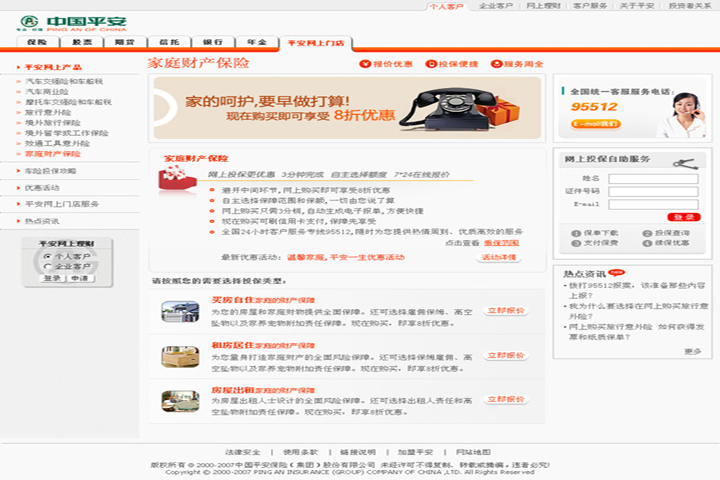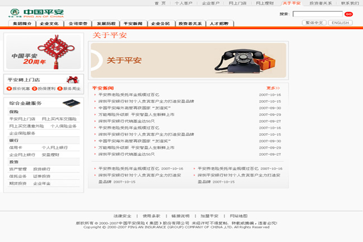 中国平安网站前期非常的不规范,没有采用标准重构的要求来编写代码,要求这次改版完全采用DIV+CSS来实现,在设计上要求也非常高,这个项目是唐宋中国在业内实力的体现,不仅在设计美观上,在专业性上唐宋中国技术表现的非常的完美。唐宋中国此次为中国平安保险(集团)股份有限公司页面改版设计,优化规范了网站代码,跟国际标准接轨,设计视觉上以用户体验为出发点,进行了整体的平安网站改造。