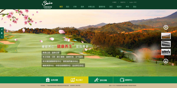 项目是以“乐活三养”(养生、养心、养老)为核心,首页突出核心定位,设计采用多屏轮播效果来诠释“乐活三养”;多屏的效果通过右边的缩略图切换来实现如图1,这样既利用了一屏重要 空间展示多屏内容又符合人们的阅读习惯,网站在开发时考虑到后期的更新问题,轮播图可随时在后台更换,编辑非常容易;