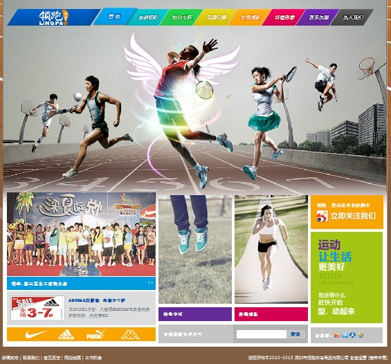1.banner部分采用动态的运动型人物设计,全线贯穿健康运动、积极向上的体育理念,实现了整体格调的高度统一。