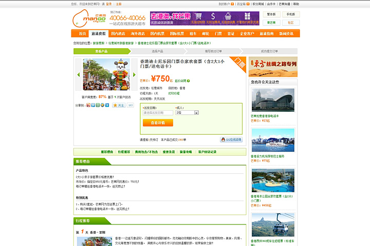 在下单过程中,我们尽可能的减少了下单环节,使用户在下单的过程中操作极为方便,同时也有助于缩短销售意向转化的时间。为满足对用户对旅游类知识的相关需求,增加用户粘性,我们增加了芒果论坛,芒果知道问答,充份调动用户的活跃度,使用户在享受交流分享的过程中,也为网站提供了大量的原创内容。