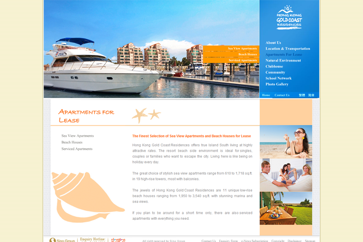 这次设计的网站目标人群针对于中上阶层,整个网站风格大气简约,清新柔和同时又充满写意。非常契合黄金海岸目标人群的口味。