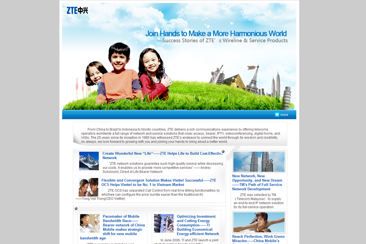 中兴通讯是全球领先的综合通信解决方案提供商。公司通过为全球140多个国家和地区的电信运营商提供创新技术与产品解决方案,让全世界用户享有语音、数据、多媒体、无线宽带等全方位沟通。公司成立于1985年,在香港和深圳两地上市,是中国最大的通信设备上市公司。