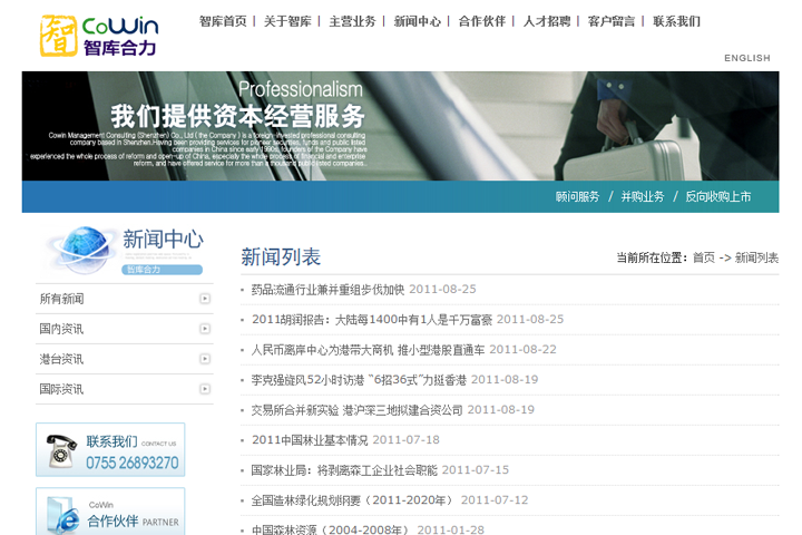 客户要求网站能够体现出金融管理的感觉,并且好更新维护。另外希望我们对某些公司的文章进行权限控制。