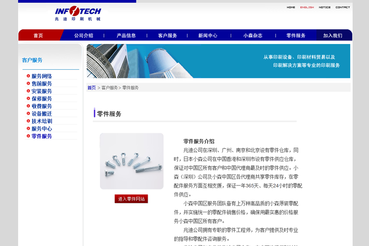 网站设计开发:知名企业兆迪改版印刷机械类网站开发设计