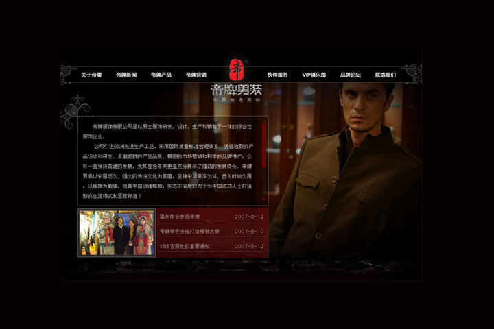 能体现出文化,并有时代感。目前网站过于普通,不利于品牌宣传,信赖唐宋中国的设计希望能够帮助帝牌男装完成官网的改版工作。