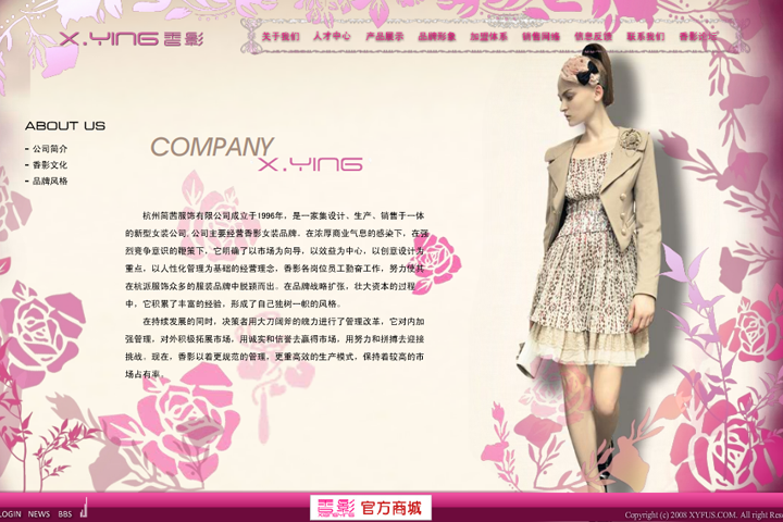 网站设计开发:女装企业杭州香影服装服饰品牌网站设计